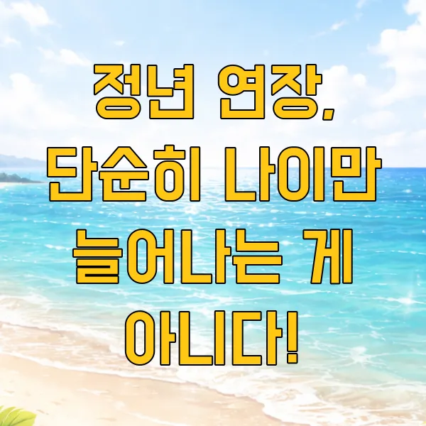 면책 조항: 본 콘텐츠는 현재 논의되고 있는 정년 연장 관련 정보를 바탕으로 작성되었으며, 법적 효력을 가지는 내용은 아닙니다. 실제 적용 시점 및 내용은 정부 정책, 법 개정, 개별 기업 규정에 따라 달라질 수 있습니다. 따라서 본 정보만을 근거로 한 의사 결정에 대해 어떠한 책임도 지지 않습니다. 반드시 관련 기관 및 전문가와 상담하시기 바랍니다.